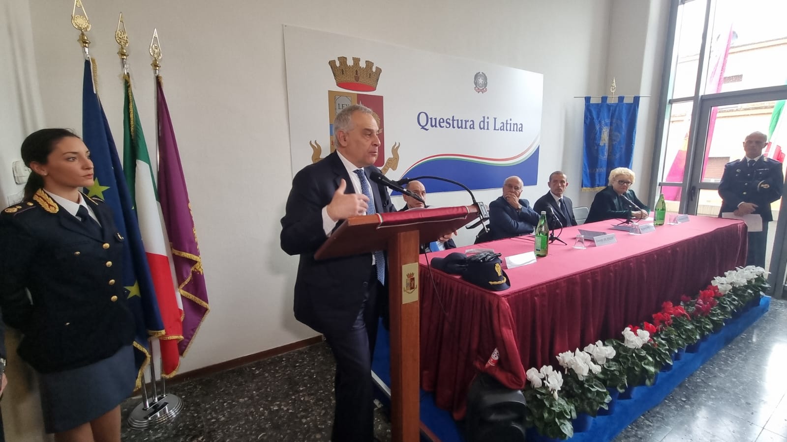 Alla cerimonia hanno partecipato il Prefetto di Latina Maurizio Falco, il Procuratore della Repubblica Giuseppe De Falco, il Direttore Centrale Anticrimine della Polizia di Stato Prefetto Francesco Messina, il Procuratore Aggiunto Carlo Lasperanza, il Presidente della Provincia Gerardo Stefanelli, e il Commissario Straordinario al Comune di Latina Prefetto Carmine Valente.