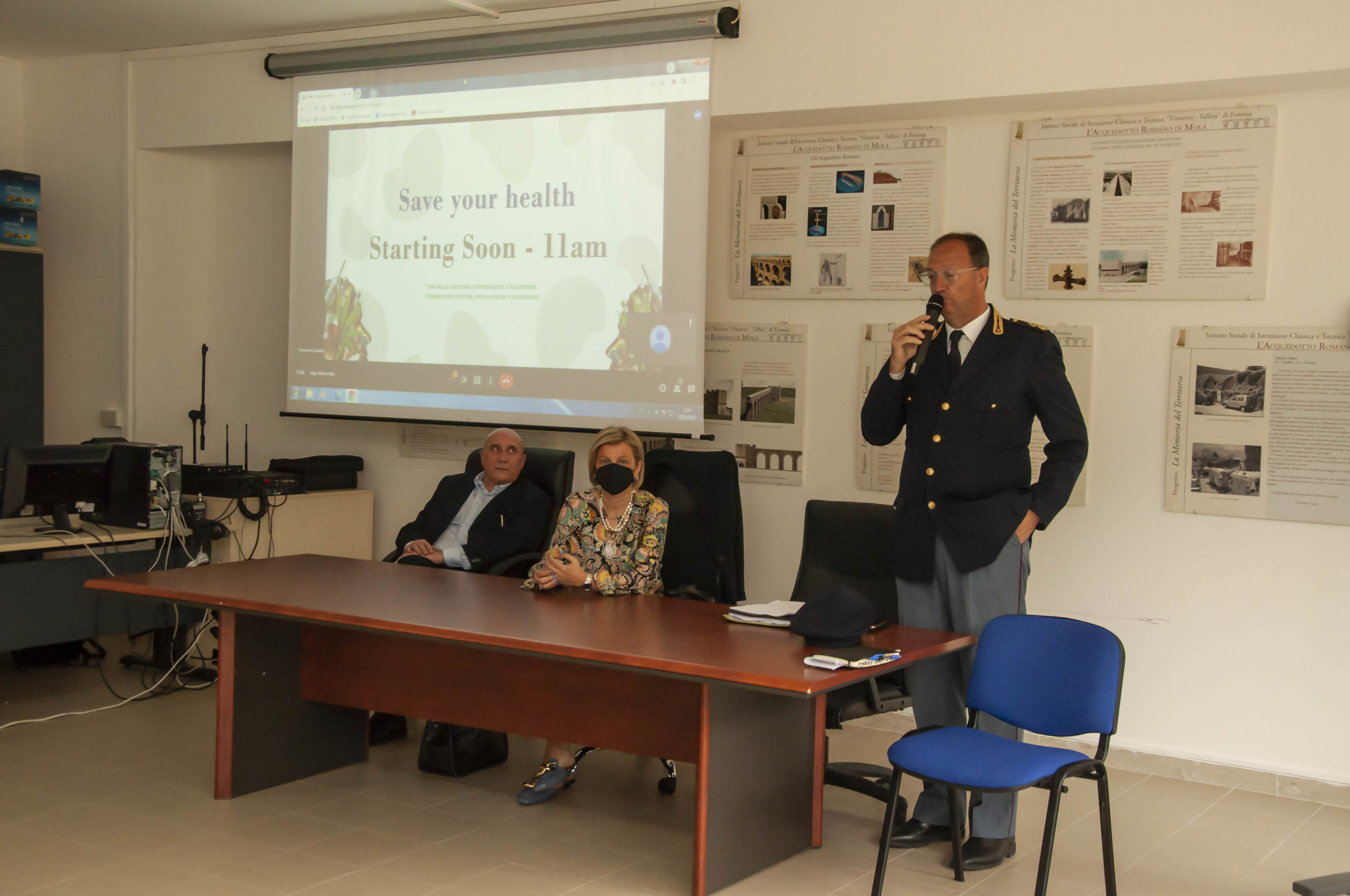 L’incontro segue l’intervento effettuato presso la scuola Tallini – il 24 marzo u.s. con la partecipazione delle unità cinofile della Polizia di Stato – che ha portato alla segnalazione amministrativa di due studenti minori per possesso di sostanze stupefacenti per uso personale ed è stato organizzato in collaborazione con la Dirigente scolastica dell’ Istituto Tecnico per Geometri “B. Tallini” di Formia (LT), Prof.ssa Rossella Monti e con il Direttore Sanitario dell’Ospedale di Formia dott. Nunzio Manciagli.